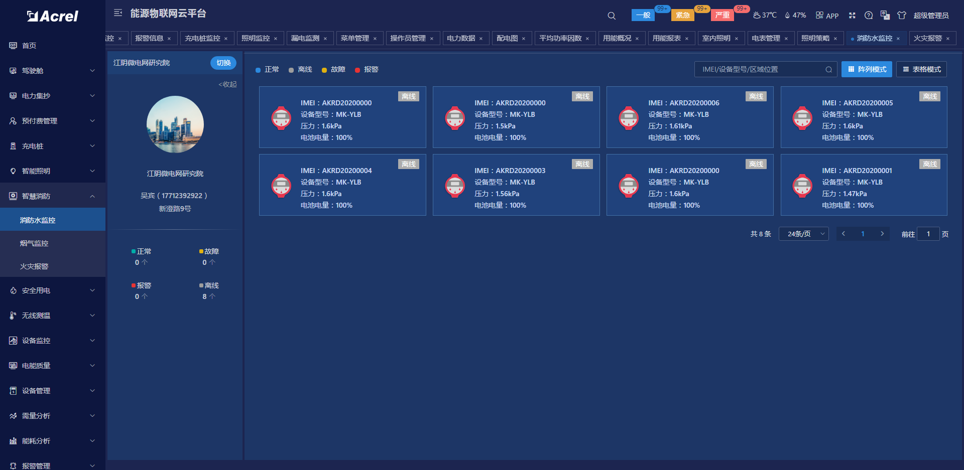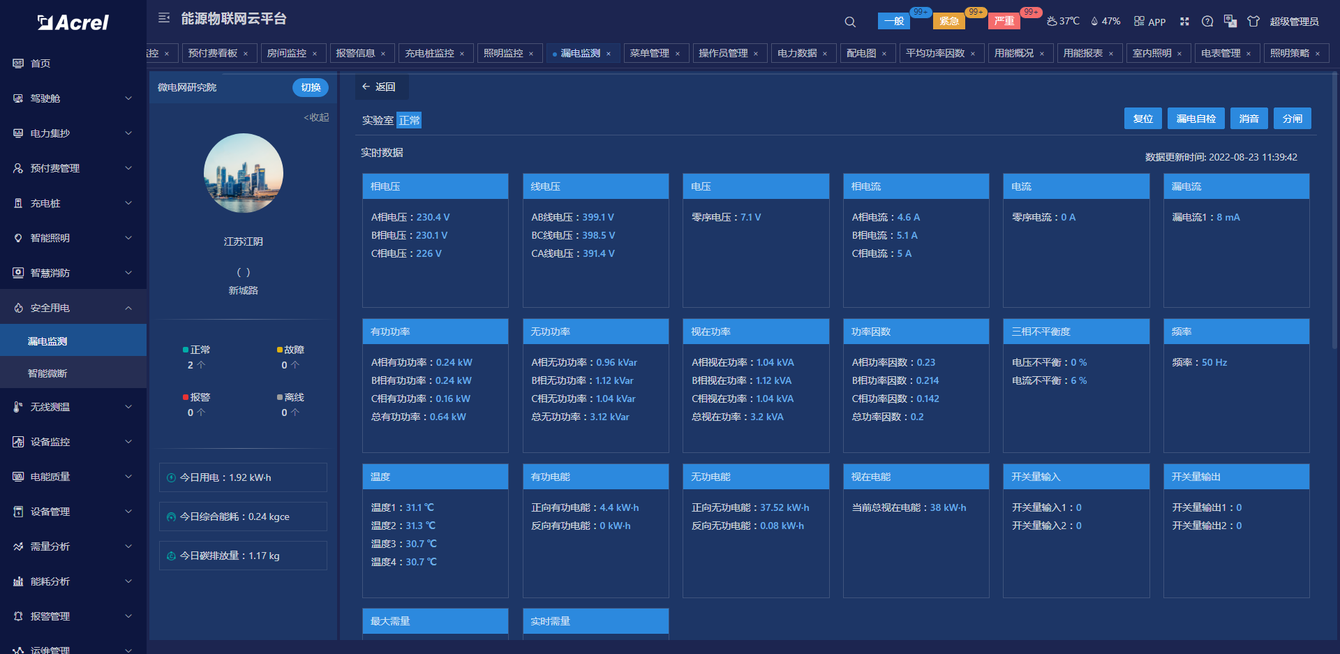 安全用電模塊對電氣引發火災的主要因素(線纜溫度、漏電電流、負荷電流、電壓)進行不間斷的數據跟蹤與統計分析,通過2G/NB-IOT/4G方式采集現場數據,實時發現電氣線路和用電設備存在的安全隱患,并通過短信、APP推送、自動語音呼叫等方式及時預警,有效防止電氣火災的發生。